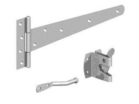 - Kit includes: An auto gate latch and a pair of 350mm (14") tee hinges plus fixings.