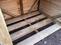 Our Timber log stores are made from treated 3x2 and Featheredge - They should be called heavy duty!