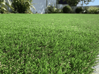 A superb high-end artificial grass with 35mm pile height and Diamond shaped blades, making the grass very soft. Wave shaped glass blade